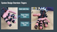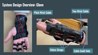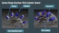 I developed this hand rehabilitation device with a team of 3 other students as a project in the Medical Robotics course at Boston University. Intended to assist patients recovering from hand injuries restore normal movements, this device consists of a soft wrist and finger sleeve, a forearm-mounted actuator unit, and an upper-arm electronics unit. The system is cable-driven via servo motors to create movement for 3 fingers, and pitch and yaw motion on the wrist.